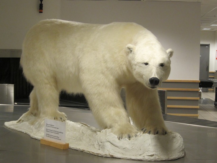 Longyearbyenin tulohallissa matkalaukkuhihnan vierellä tapaa heti täytetyn jääkarhun. Niitä oli melkein joka paikassa, supermarketista kirkkoon. Yhtään elävää ei pimeydessä tullut vastaan. Svalbard hotelli osoittautui hyväksi valinnaksi kaikki toimi hyvät infot alueesta. respasta varasivat retket jos tarvis.