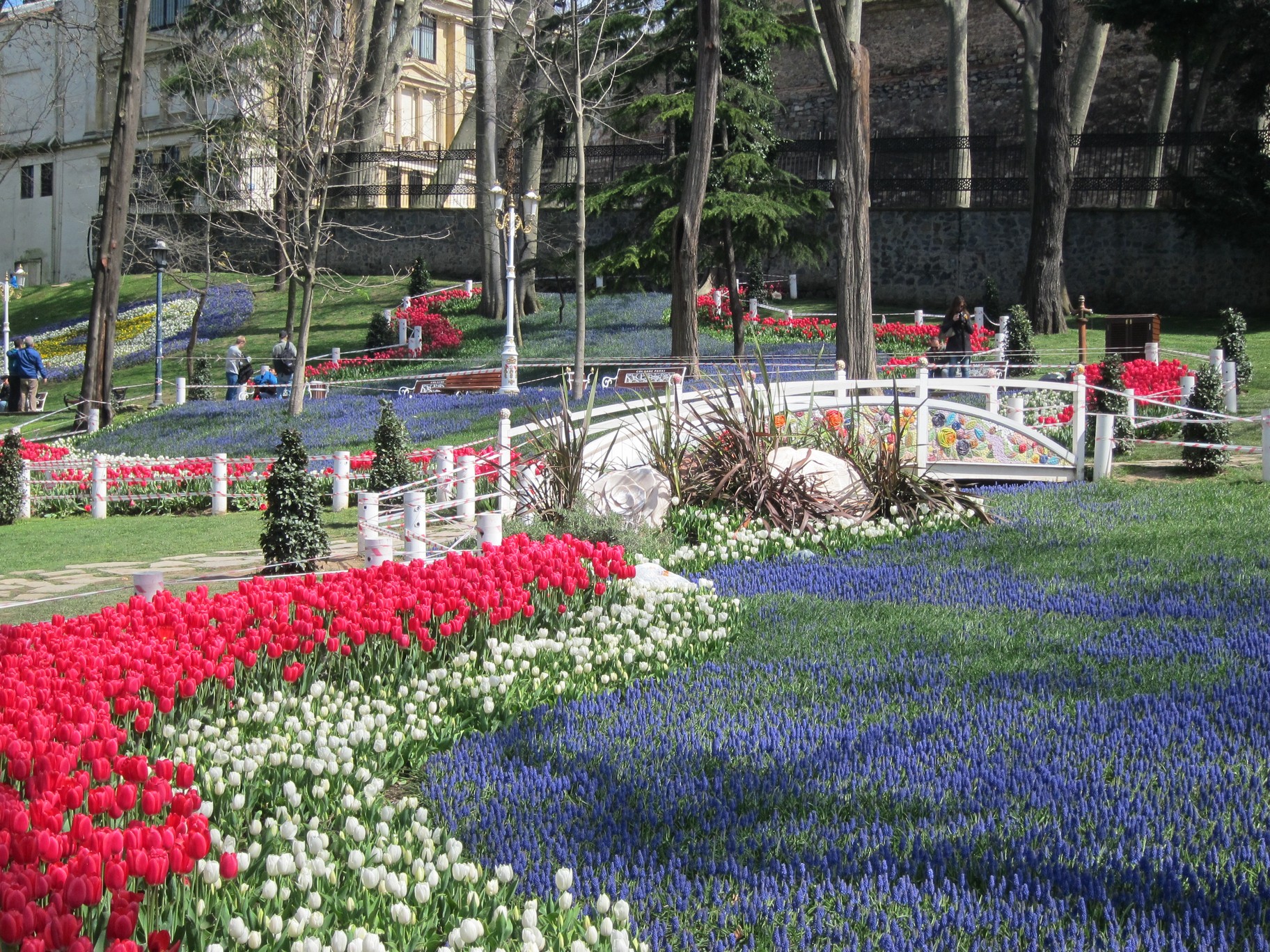 . Hienoin löytö oli kansanpuiston(Gülhan) jo vuodesta 2006 keväisin loistoonsa heräävät tulppaani istutukset. http://en.wikipedia.org/wiki/G%C3%BClhane_Park . Vaelsin toiseen takuu varmaan paikkaan. Kansan puisto päättyy hienoon paikkaan, jossa on kahvila ulkosalla http://www.istanbulaskina.com/setustu-cay-bahcesi/ Paikalta on mitä mainioin katsella Bosporinlahdella lipuvia laivoja. Tälläkin kertaa halusin ihastelleen näkymää ja juoda ihanaa turkkilaista teetä pikkulasista. Sitä tuotiin yhdelle hengellekin kaski pannua päällekkäin pienemmässä haudutettu tee ja alemassa kuuma vesi. Fiilis oli ihan mahtava. Kiitin monta kertaa siitä, että sää oli mitä mahtavin mun päivän visiitille ihanaan Istanbuliin. Tunsin naamassani, auringon hehkun, jos loppu matka on vain sadetta, voin muistella tätä upeaa säätä ja näkymää yli Bosporin lahden.
