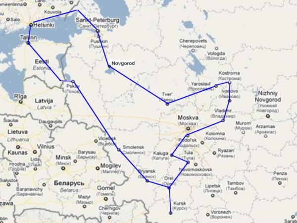 10-vuotismatkasta Kari Mäntysalo runoili näin. Alla kuva matkan reitistä.