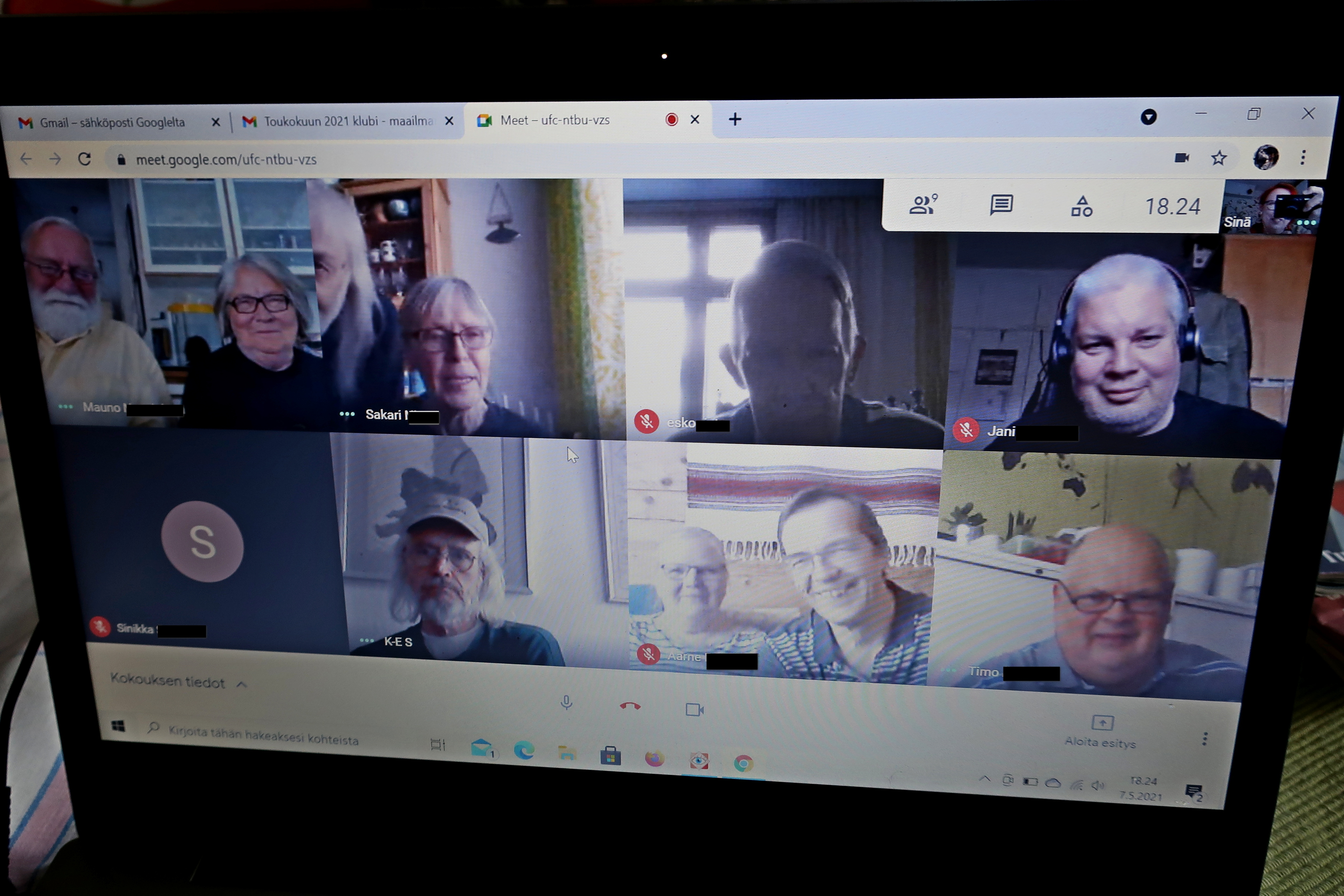 Toukokuun kokous pidettiin etänä 7.5. ja tietokoneiden äären kokoontui 13 maailmanmatkaajaa. FB muistutti, tasan 11 vuotta sitten kokoontui yhdeksän maailmanmatkaajaa Arthuriin, nyt heistä on mukana kolme.