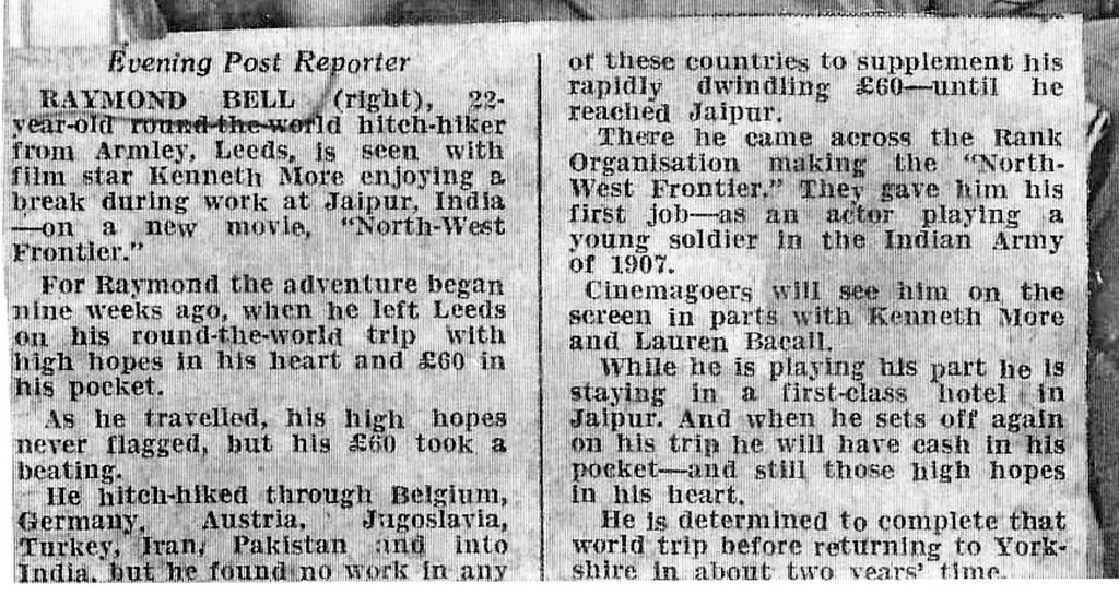 taskussa ja päätyi Jaipuriin, Intiaan. Siellä hän pääsi näyttelemään sotilasta North West Frontier -elokuvassa. Matka kesti vielä sen jälkeen kaksi vuotta.