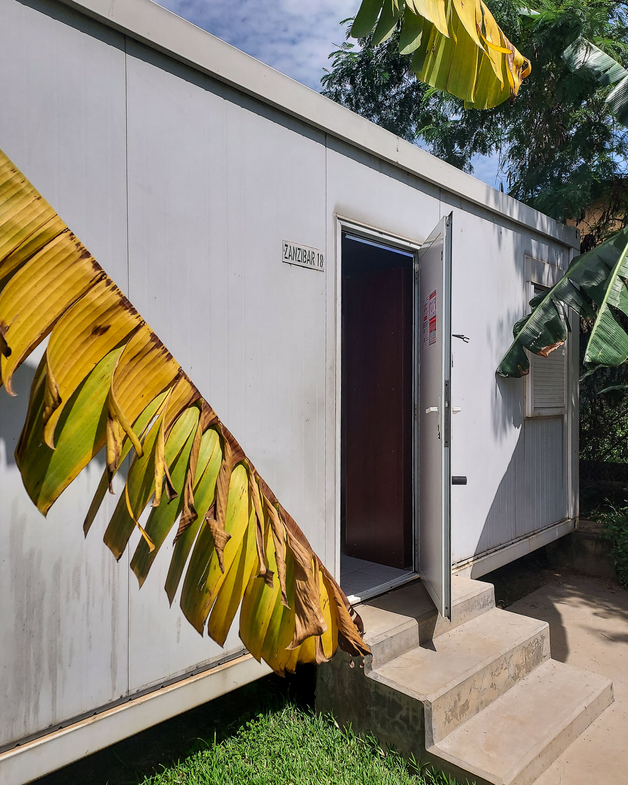 Meidät vietiin lentokentältä suoraan hotellin, joka sijaitsee isolla ja hyvin vartioidulla alueella Niilin rannalla. Hotellista poistuimme vasta paluumatkalla. Hotellissa majoittui turistien lisäksi myös YK:n ja avustusjärjestöjen työntekijöitä. Majoitus oli järjestetty pääosiin pieniin tukeviin mökkeihin. Meidän majoitus oli 1 hengen konteissa!