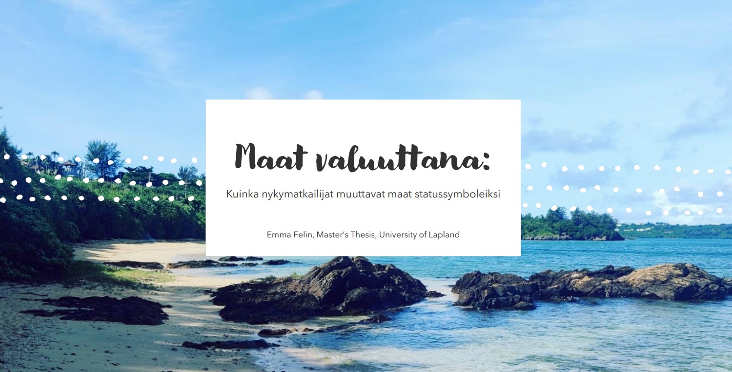 Helmikuun kokouksessa Emma Felin, joka on äskettäin julkaissut tutkimuksensa aiheesta Countries as currency: How modern travellers turn countries into status symbols kertoi meille työnsä taustoista ja löydöksistä mm. haastatteluilla saamaansa tietoon perustuen.